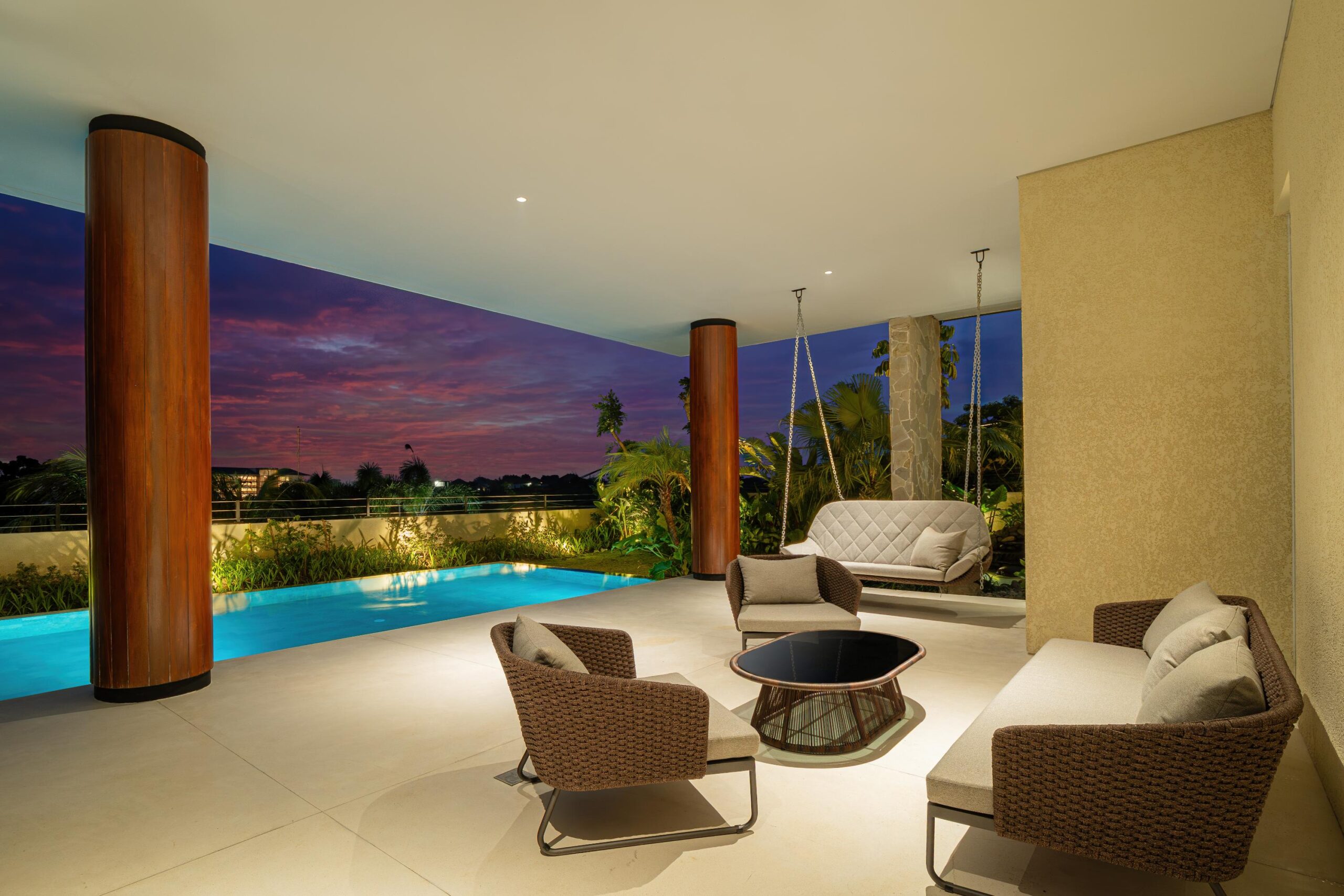 Designed for up to 10 guests, it’s made for group escapes and family time. Swim laps in the 20m pool, move between sauna and ice bath, or claim the massage room for yourself. Flow through yoga on the open-air deck or turn up the pace in the airconditioned gym. Everything’s yours, 24/7.