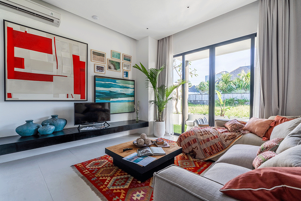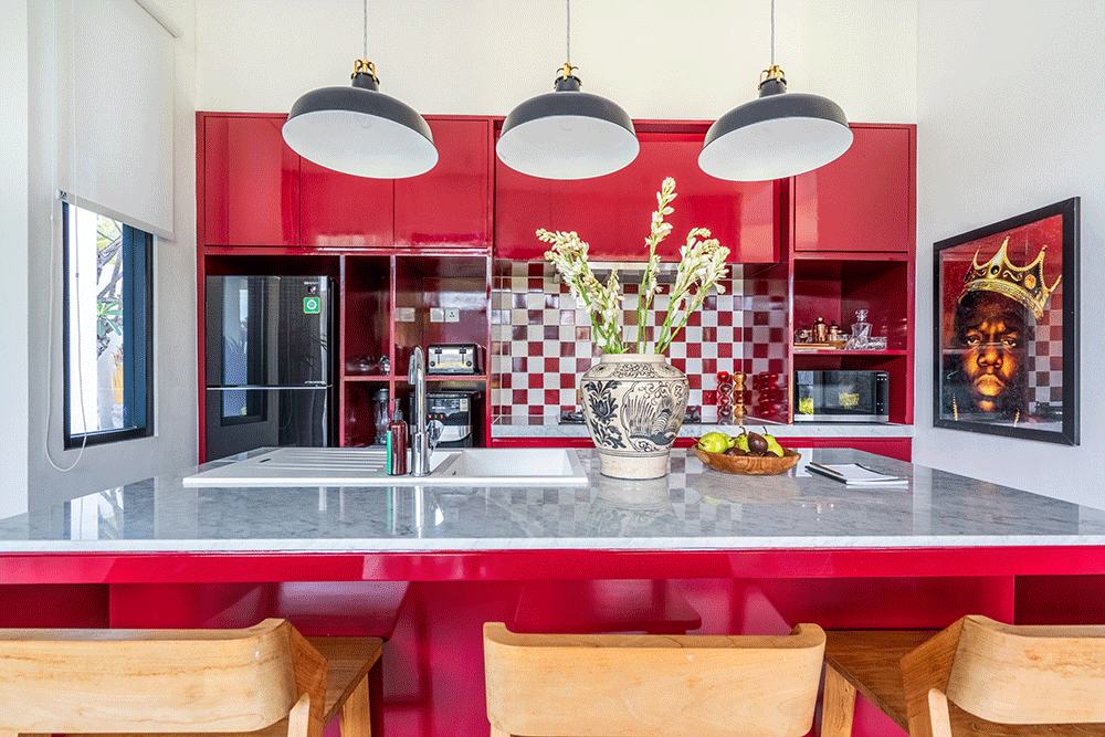 Relish having London-style Mews living, while embracing Bali’s relaxing lifestyle. Each two-storey villa comes with stunning spaces made for a life of leisure. Enjoy having your own sun terrace and a private pool, and lounge in the spacious open-plan living area. The sheltered dining terrace is made for beautiful meals by the plunge pool, where you can dip your toes in the water or slide open the glass doors to access the well-equipped kitchen and its breakfast bar. One of the villas features an eye-catching red kitchen; it’s a picture-perfect backdrop for whipping delicious meals.