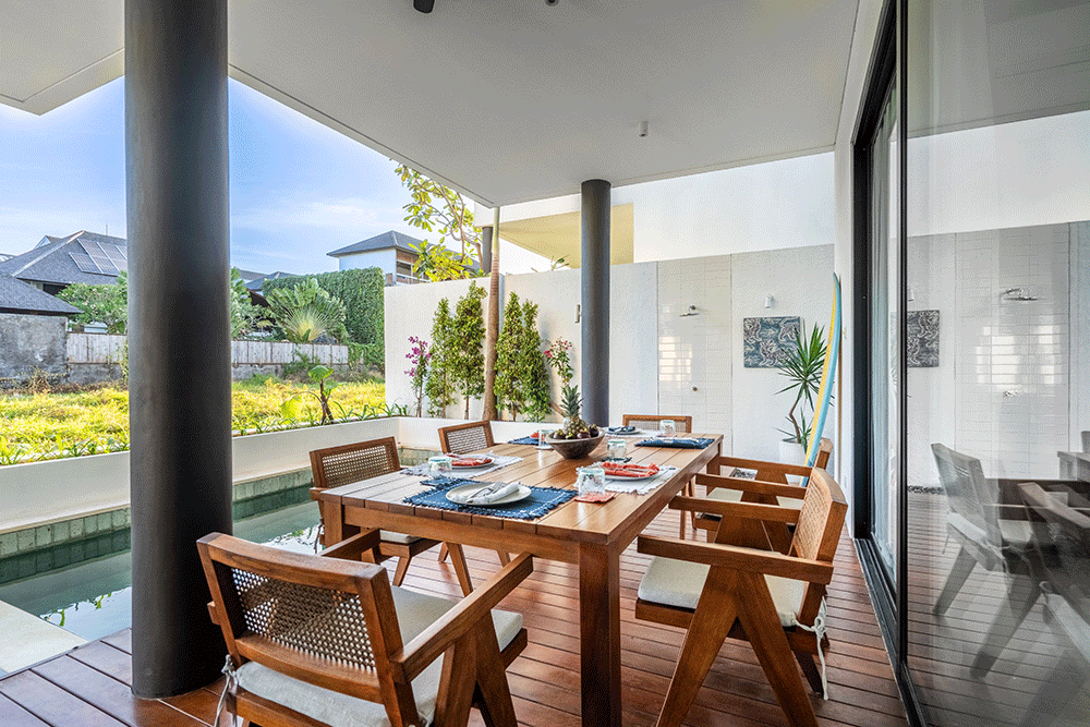 Sleep blissfully dreaming of more unforgettable days ahead, in the three ensuite bedrooms, supported by a dedicated villa team comprising housekeepers and security staff so that you can holiday in style. The master suite also has its own balcony where you can admire rice paddy views while enjoying a cup of coffee in the morning.
