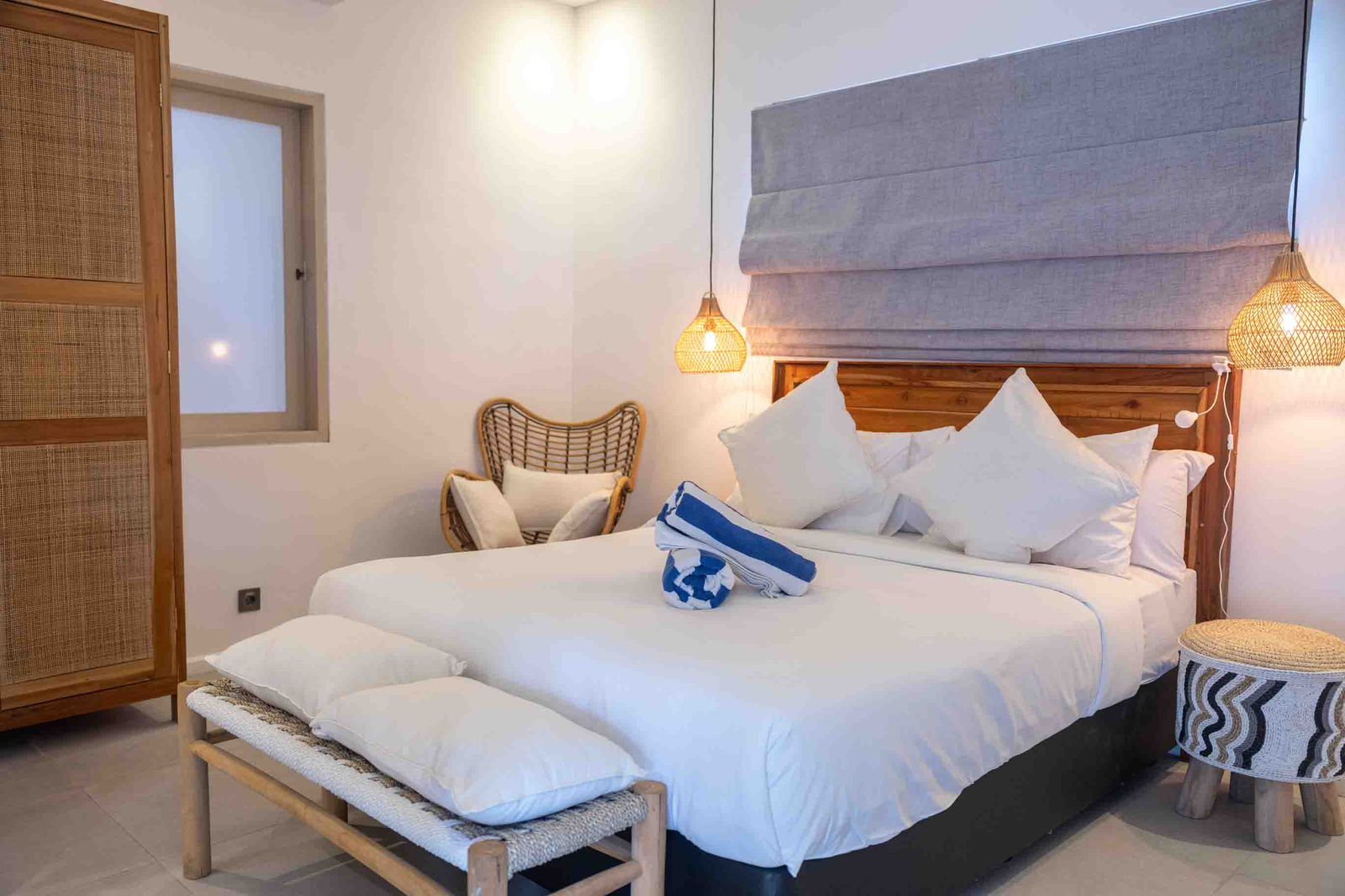 Each of the two bedrooms is designed with comfort in mind—featuring queen-size beds, stone or elegant bathroom finishes, and plenty of natural light filtering through. Calm color palettes and soft fabrics ensure a restful ambiance, ideal for unwinding after sunny days spent exploring or surfing. En suite bathrooms add privacy, making each room its own private retreat.