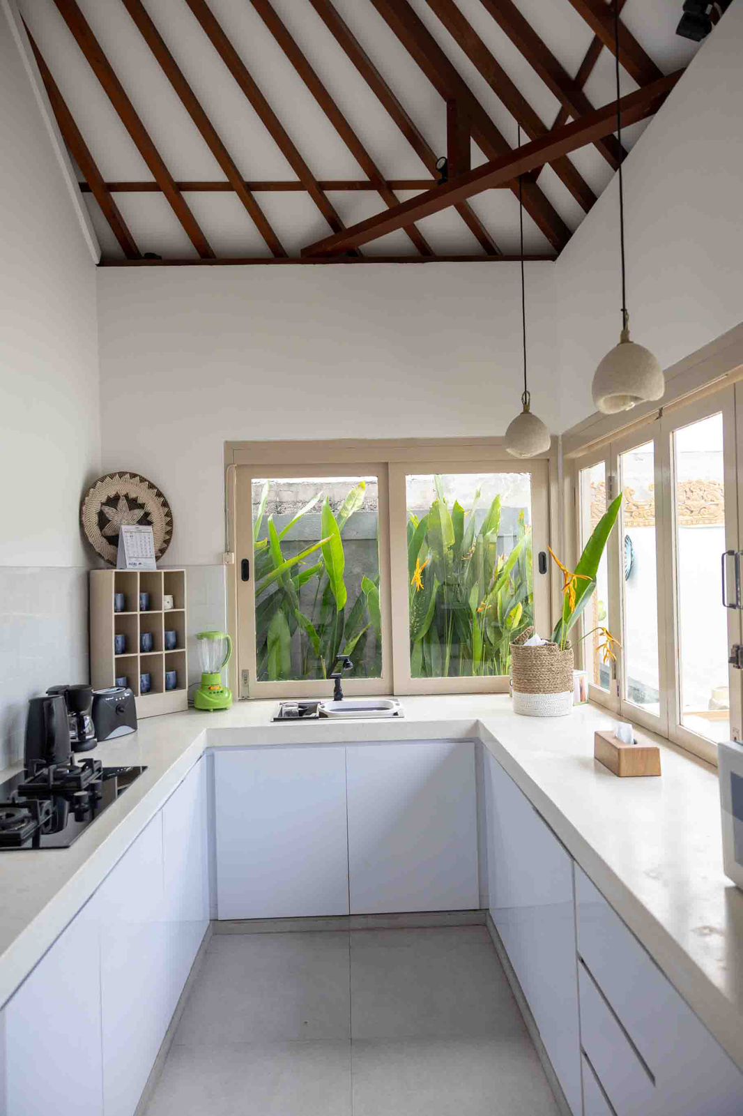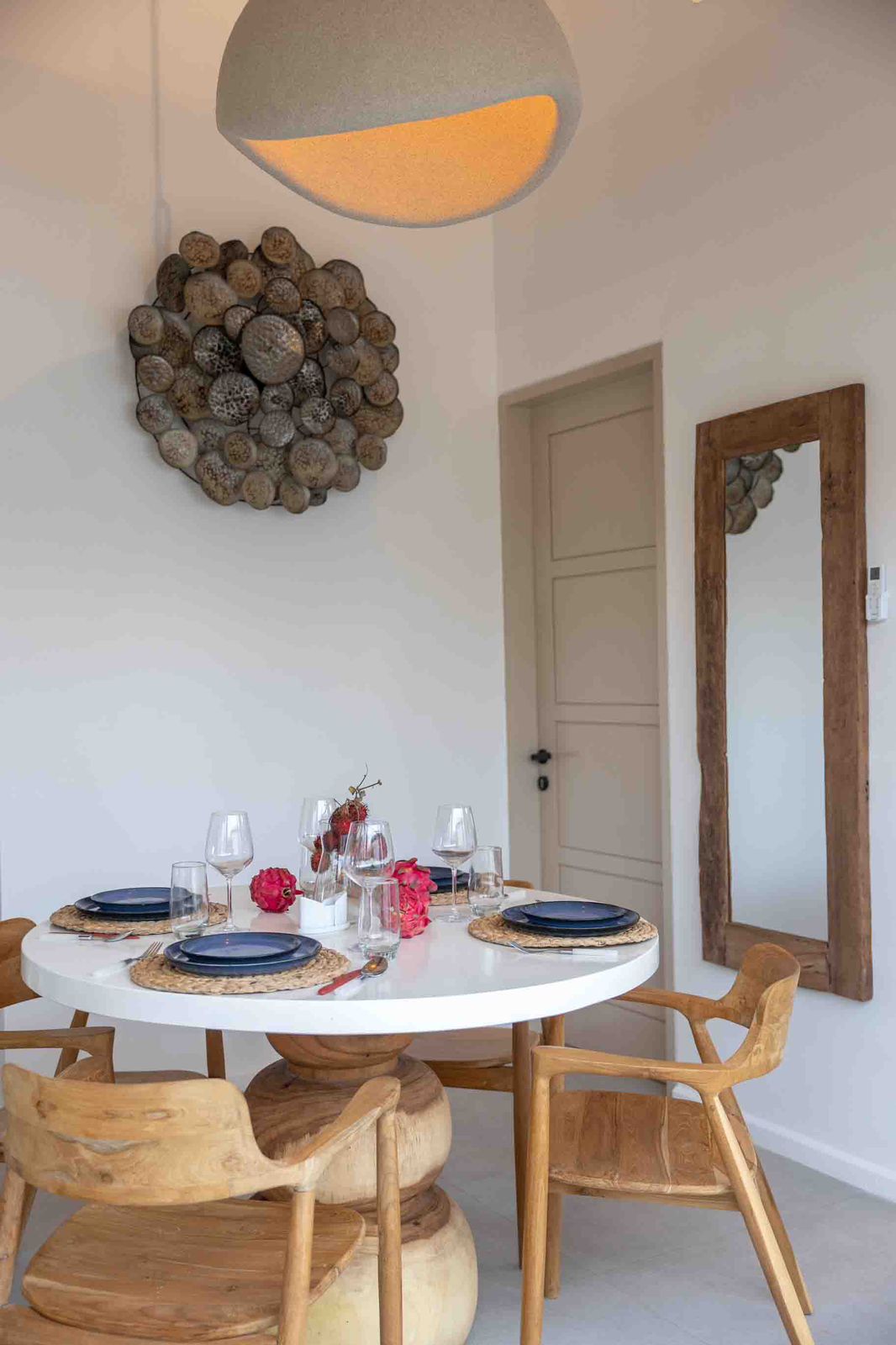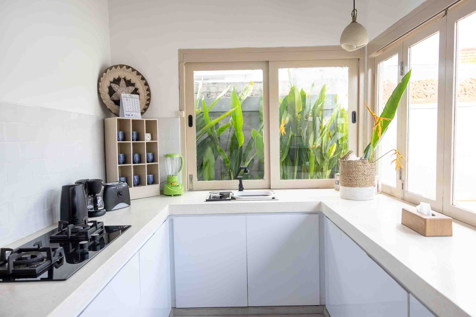 Villa Alain 1 features an enclosed living room, designed for comfort and convenience. Though not overly spacious, the layout feels cozy and intimate, perfect for small gatherings or simply relaxing after a day out in Canggu. A smart TV with Netflix access ensures you can enjoy your favorite shows and movies from the comfort of the sofa, while the adjoining compact dining space and fully equipped kitchen make staying in just as enjoyable as going out.