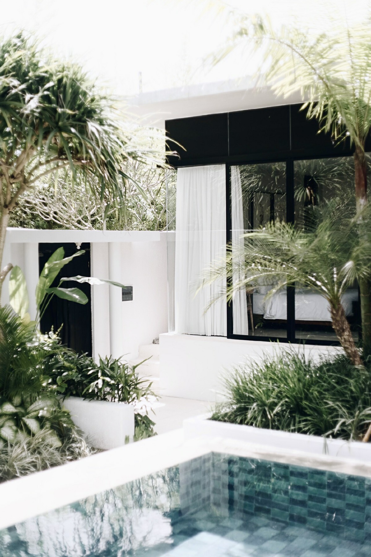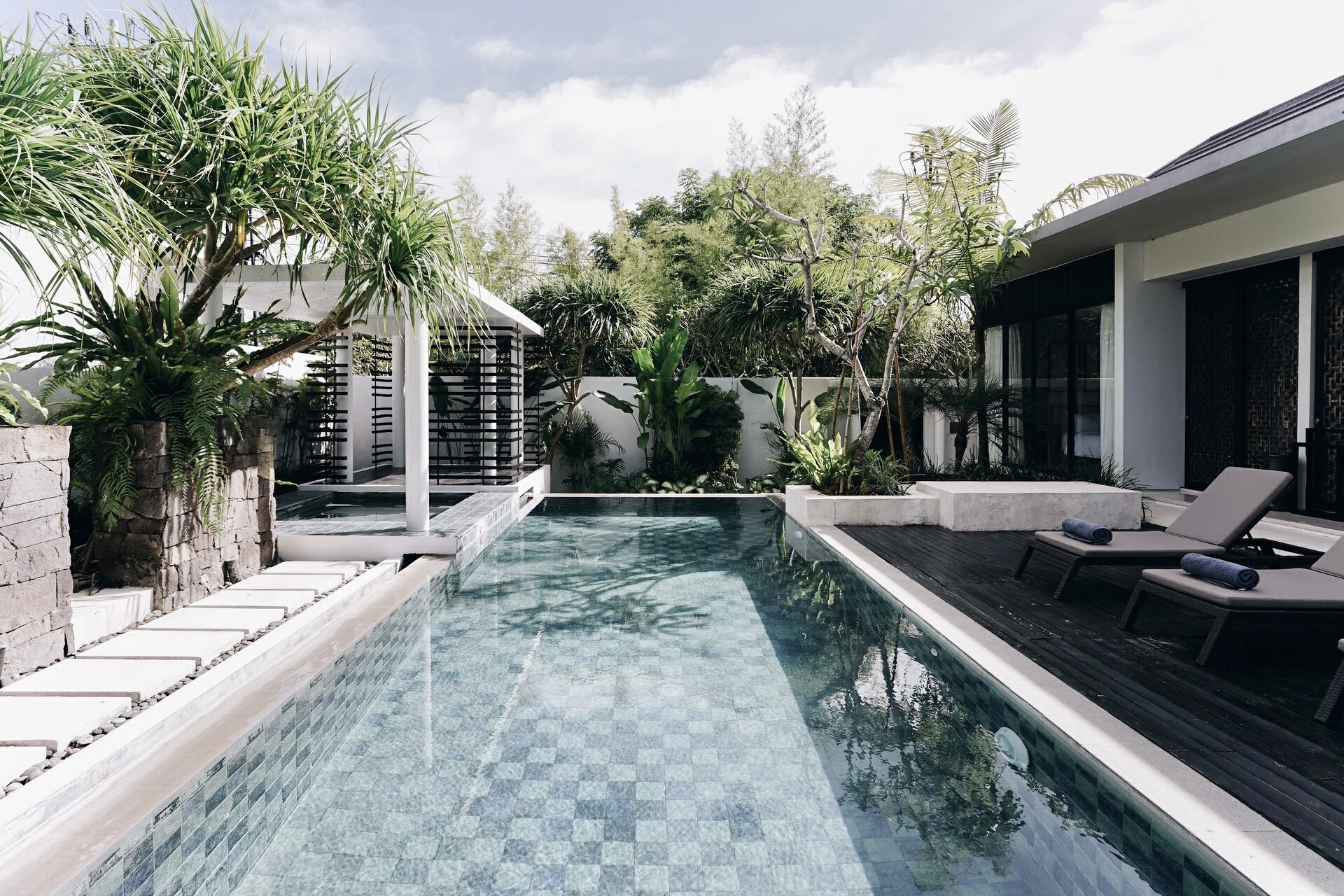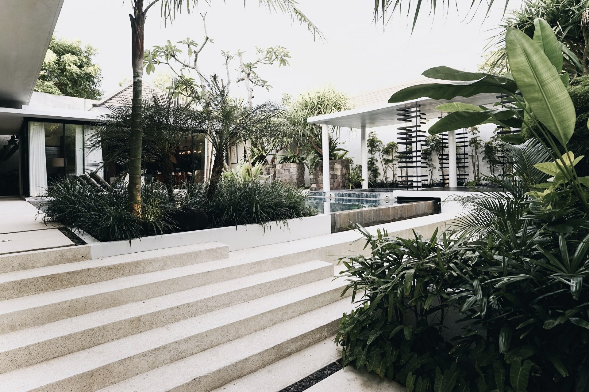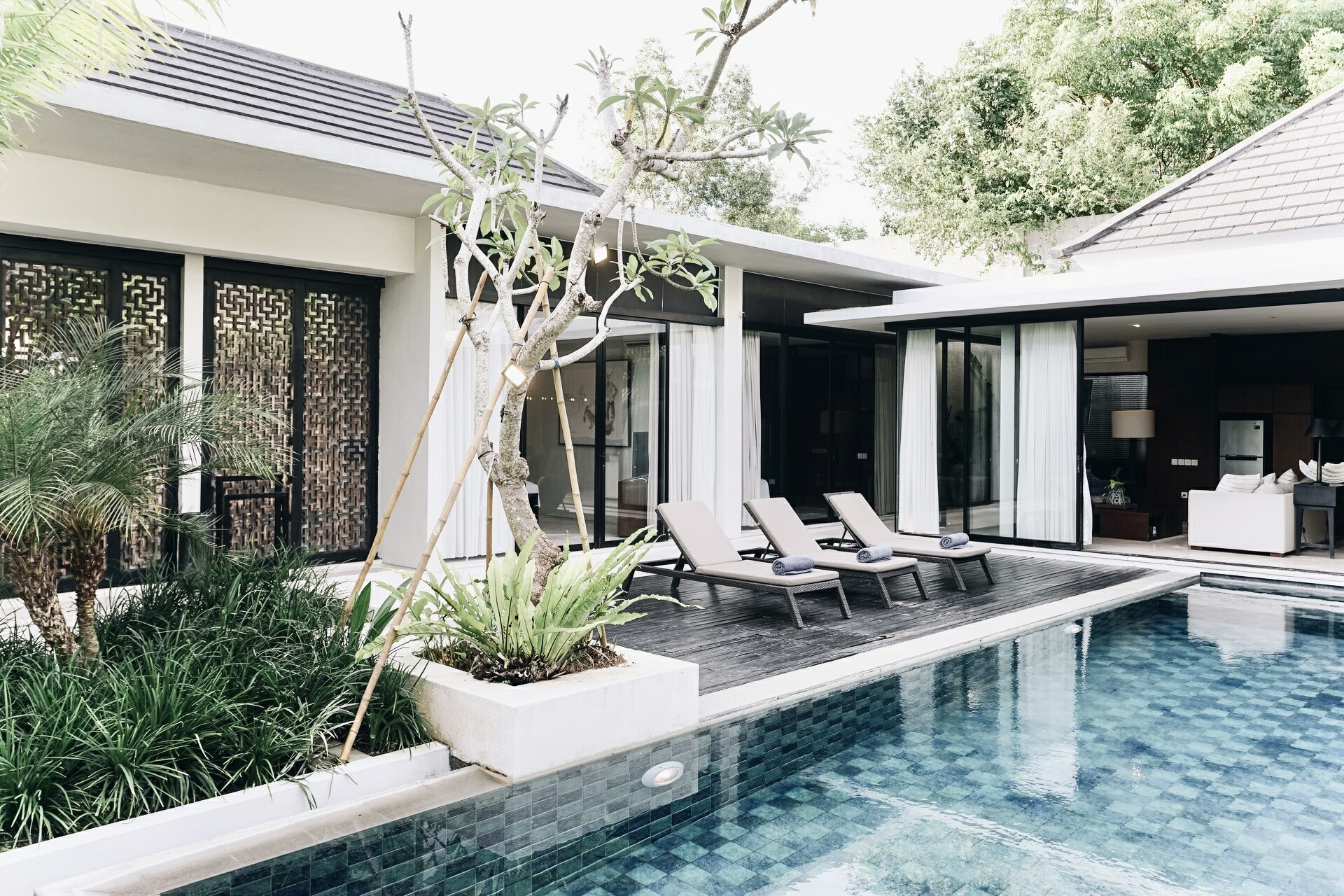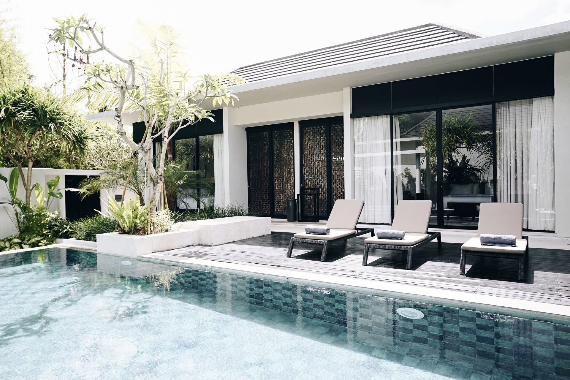 In the heart of the villa is the inviting outdoor pool, framed by the living spaces on one end and sprawling tropical plants on the other. On the far end of the pool next to the garden is an alluring jacuzzi ready for you to rejuvenate the body after a full day of island exploration. Alternatively, choose to laze the day in the comfort of your villa lounging on the inclined long chair on the pool decking area, or get inspired and create content for your social media around the many Instagrammable hotspots in the garden pool area. For the curious mind, take a stroll outside and around the villa complex and be surprised at what you may find!
