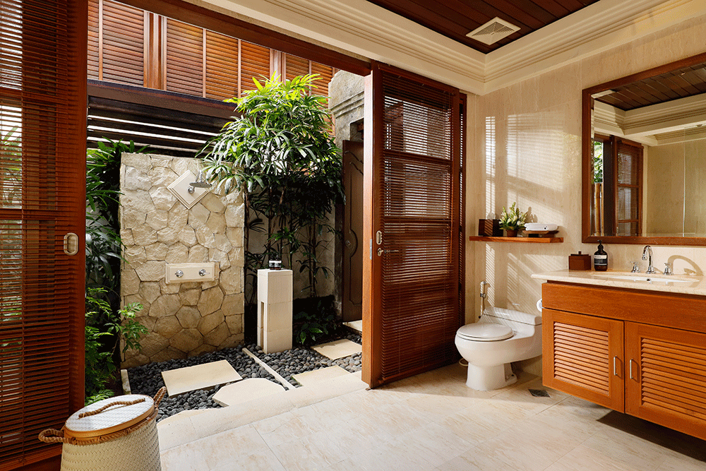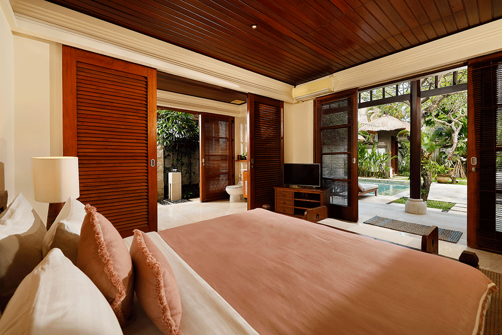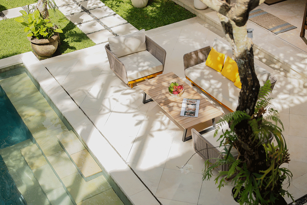 Nature takes centre stage in all outdoor living areas of Villa Nayra. Exotic tropical foliage of all kinds and sizes lining the perimeter of the villa wall makes for perfect backdrops at every vantage point. A thick canopy of trees sheltering over the pool allows you to swim with ease at all hours of the day. Choose to spend the day lounging on the poolside deck chairs for some quality me-time, or cosy up with family and friends in the intimate lounge area on the other side, discussing the great Bali explorations. Let the sound of a cool breeze and the chirping of birds be the soundtrack to your blissful afternoon. For the adventurers at heart, feel free to take a stroll and explore the secured neighbourhood and be pleasantly surprised at your discovery.