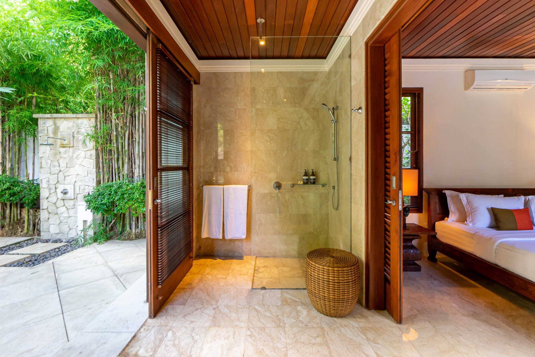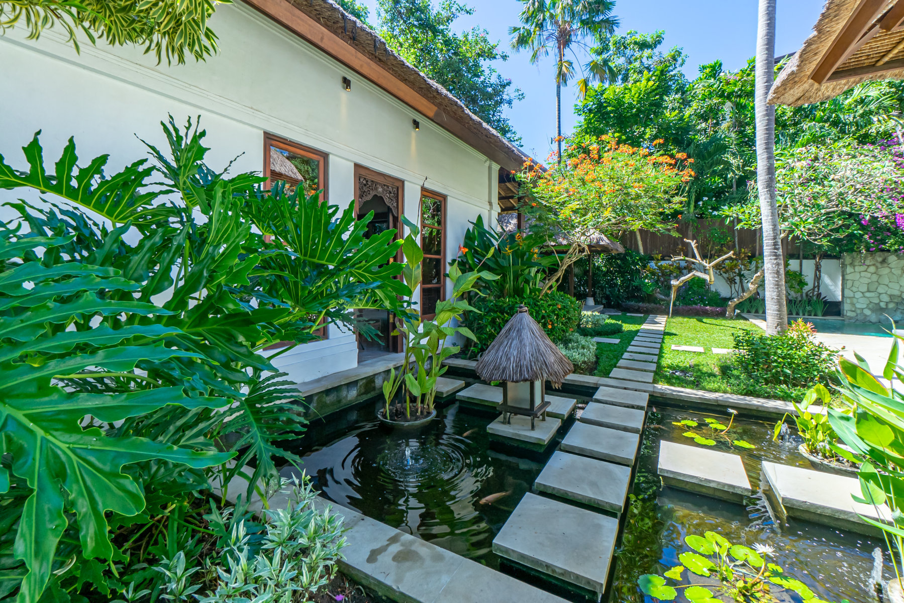 Lush. Tranquil. Inviting. These three words spring to mind at first sighting of the garden area of Villa Ohm. The centrepiece is the enticing outdoor pool shrouded over by a thick foliage of Bougainville, surrounded by tropical island greenery of every kind. There are two koi ponds amidst the natural serenity balancing the Feng Shui of a perfect garden. On the far corner of the garden stood a gazebo under a canopy of dense trees, perfect for lazing the day away with your favourite book and choice beverage. An outdoor shower is also available for utmost convenience.