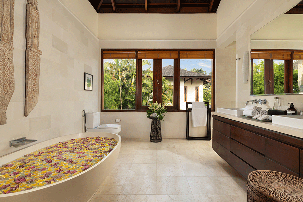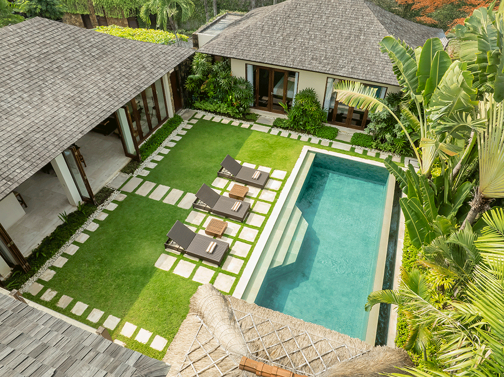 The Suar Seminyak is a luxurious five-bedroom retreat nestled in the lively heart of Seminyak, blending traditional Balinese charm with modern elegance.