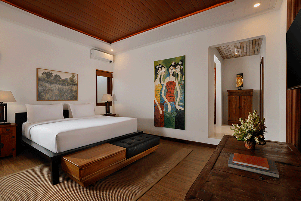 Five beautifully appointed bedrooms make up the private sanctuary of Villa Tropical Svasti, each crafted to blend ease, intimacy, and understated elegance. Framed by warm wooden textures and soft natural light, every space feels connected to the villa’s tropical rhythm — where comfort meets quiet luxury.